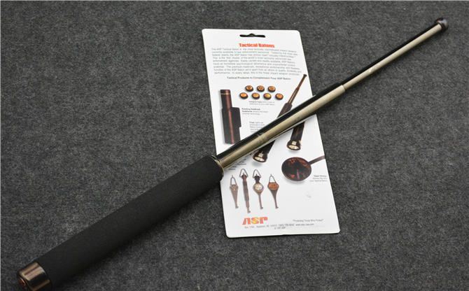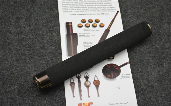 根据正品ASP的性能,我们制作了它的超级仿品,性能接近90%以上,是国内最好的甩棍 之一,性价比超高。 棍体材料:高强度合金钢, 硬度大概58HRC(经测试,能吊起一辆汽车以上的重量) 棍把材料:黑色乙烯基合成(防滑材质,不会因流汗潮湿而滑手) 收缩长19.7 CM (便携隐蔽) 甩出长51.8 CM (常用长度) 净重:480克 表面:黑钛 原版双面吸卡包装 其他性能:钢卡式,专门在接口处精密处理,处理后甩出锁定牢靠, 收回时,朝地面垂直一磕就回去了。