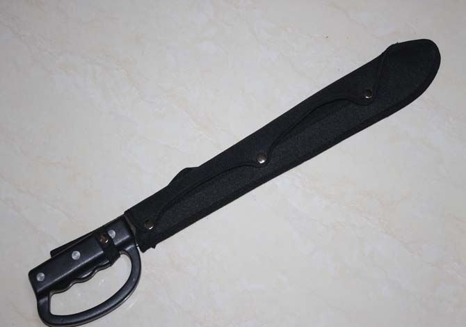 全长: 56CM 刃长: 43CM 刃宽: 4CM (最宽处) 刃厚: 0.33CM 硬度: 56HRC 重量: 610克(含套) 材质: 420不锈钢 涂层: 砂光版 柄材: ABS 刀鞘: 尼龙套
