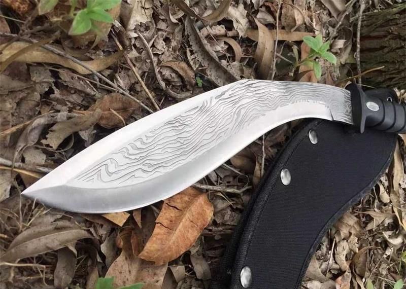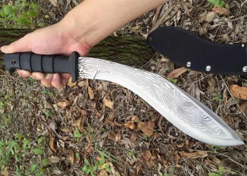 卡巴狗腿臻铸081(蚀纹版) 全 长:42cm 刃 长:27.5cm 柄 长:12.8cm 刃 厚:4mm 刃 宽:6cm 刃 材:3Cr13Wov 表 面:酸洗纹 柄 材:橡胶 硬 度:56HRC 重 量:600克(含包装物) 包 装:尼龙套 备 注:带指南针