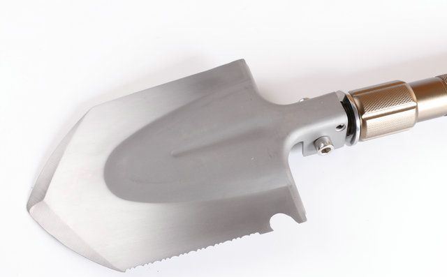 功能:有铲,锄 ,锯,刀,开瓶器,打火棒,撞击器,一字十字螺批等功能,在生产工艺上采用上好淬火高碳钢,增加强度,抗磨损,抗腐蚀,耐高温等优势.有把铲在手,登山,外出永不怕。
