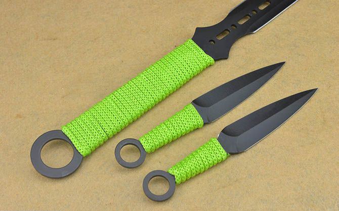 飞镖尺寸 长:16.5cm 宽:2.5cm 刃厚:2.8mm 刃长:8.5cm 柄长:7cm 表面: 发黑 刃材: 440 硬度: 56HRC 柄材: 绑绳 重量:37.6g