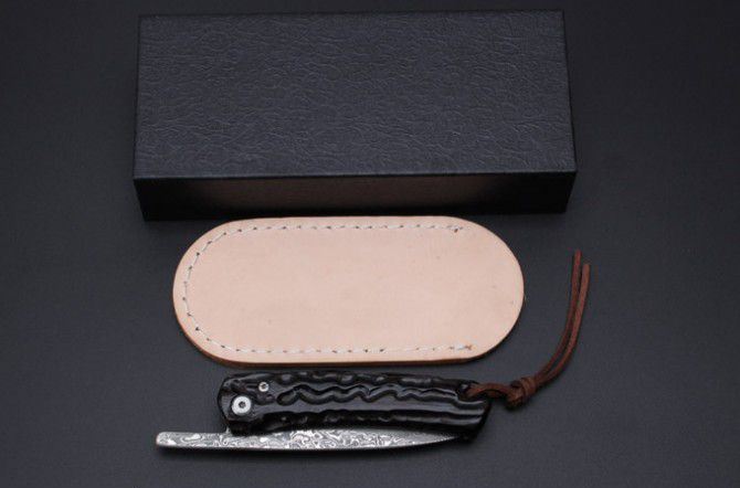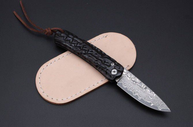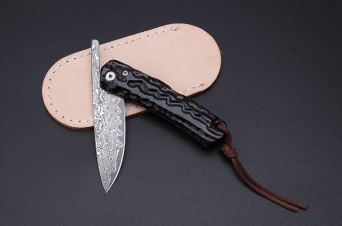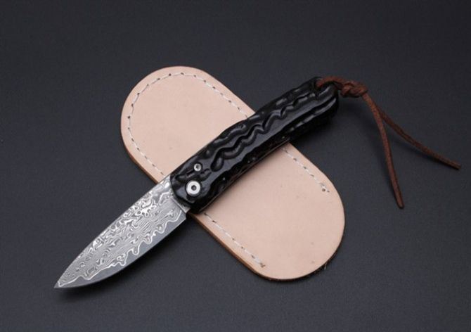 啄木鸟大马士革折刀 全 长: 17cm 刃 长: 7cm 柄 长: 10cm 硬 度: 59HRC 刃 厚: 0.24cm 重 量: 100克左右 刃 材: 大马士革钢 刃 宽:21mm 柄 材:黑檀木 锁 型:无锁 净 重:62g 总 重:126g 包 装:黑盒+皮套