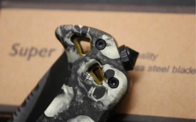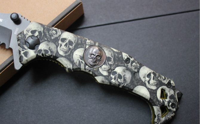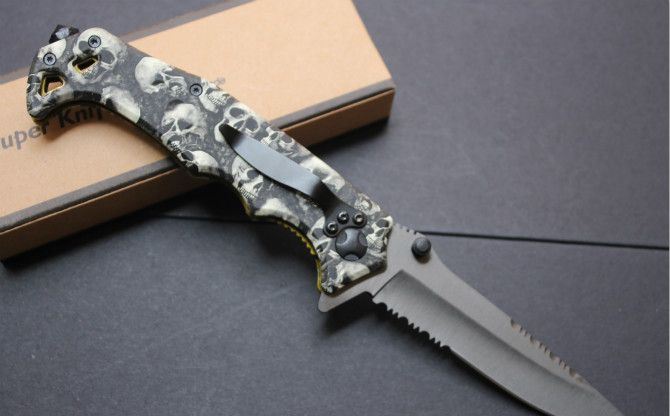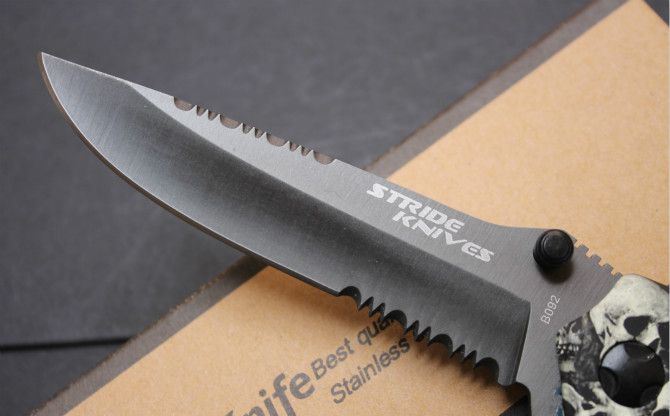 全长:22cm 刃长:9.5cm 刃宽:2cm 闭合:12.5cm 刃厚:0.27cm 钢材:440C 硬度:56HRC 净重:206g 表面:镀钛 柄材:(披履) 锁型:快开 包装:纸盒