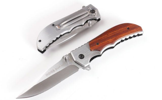 SOG-FA20快开折刀(木柄) 全 长:21.6cm 刃 长:9.2cm 柄 长:12.2cm 刃 宽:2.8cm(最宽处) 刃 厚:2.8mm 刃 材:5CR13MOV 硬 度:56HRC 刀 柄:全钢+实木 表 面:拉丝光 重 量:250克 配原厂包装