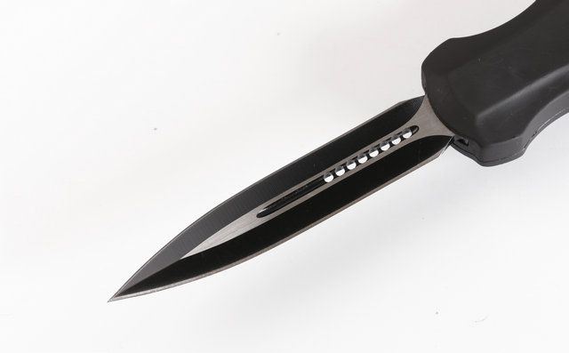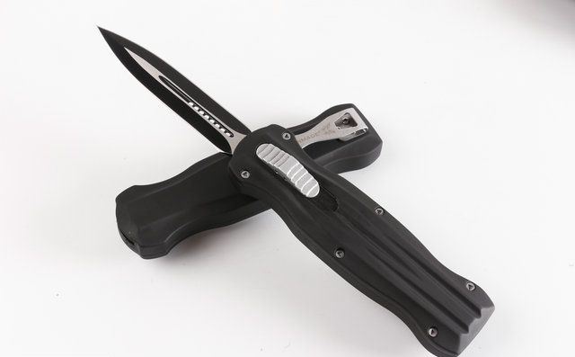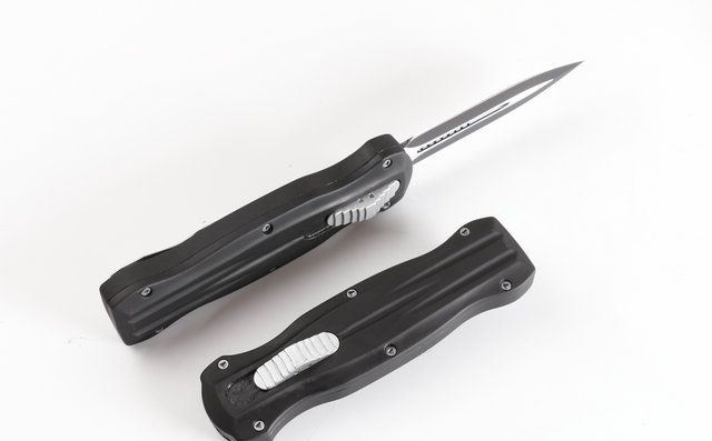 蝴蝶A10双锋直出刀 全 长: 22.0cm (含尾锥长度) 刃 长: 9.0cm 刃 厚: 3mm 刃 材: 440 硬 度: 57HRC 重 量: 400克(含包装物) 表 面: 灰钛(刀刃) 柄 材: 锌铝合金 刀 鞘: 尼龙 锁 闭: 弹簧直出 备 注:带背夹