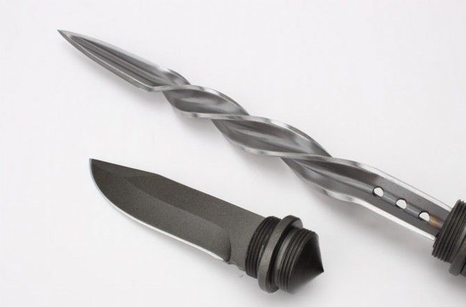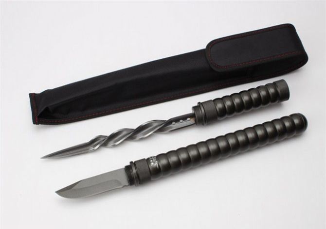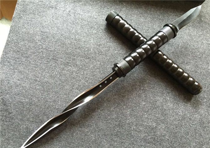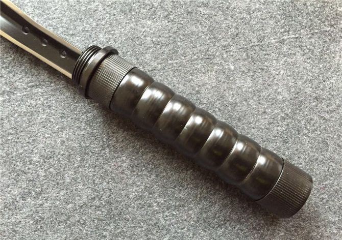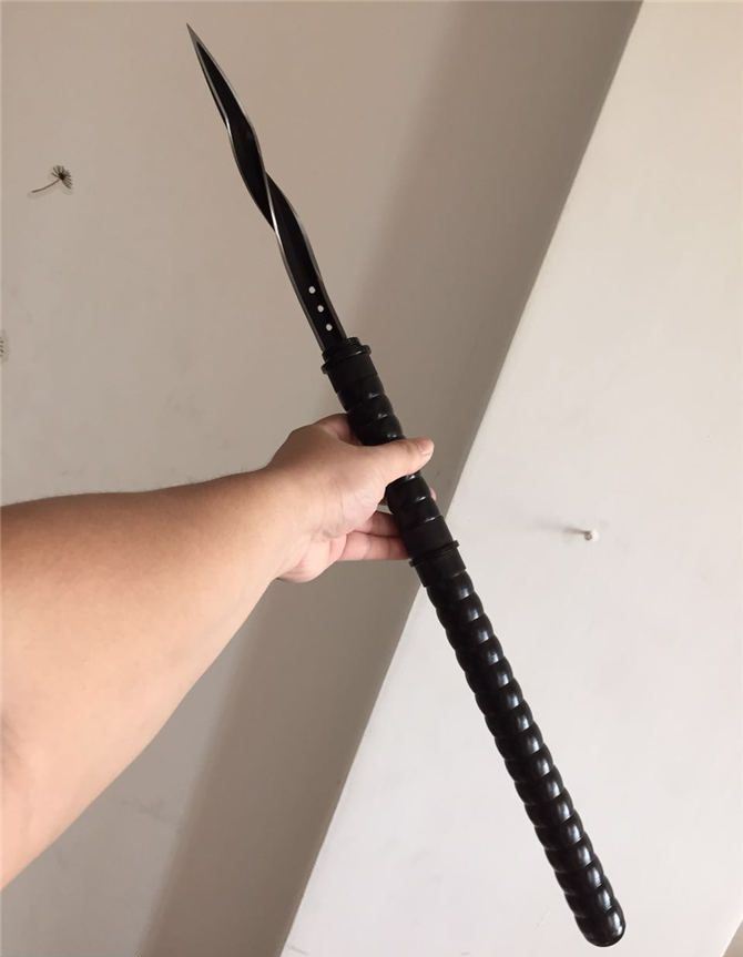 全 长:440cm 反接长度:66CM 刀刃长:10.2cm 刀刃宽:2.5cm 刃 长:235c 柄 长:172cm 刀 型:三棱刺 刃 材: 7Cr17Mov 柄 材:铝管镀钛 刀 鞘: 尼龙鞘+彩盒 净 重:572g 毛 重:731g