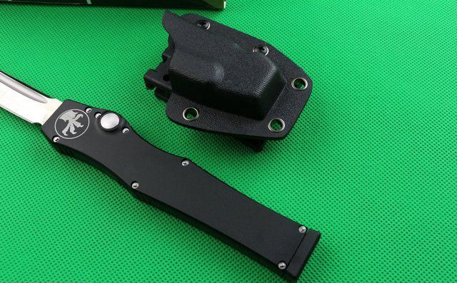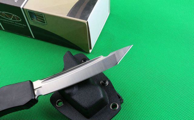 精仿美国微技术150-10HALO V超弹力直跳刀 全 长:27.4 CM 刃 材:ELMAX 刃 长:10.6 CM 刃 宽:1.98 CM 刃 厚:0.43 CM 柄 材:铝合金 刀 型:直跳 锁 定:按钮锁 重 量:148.8克 附 件:Kydex鞘,说明书,彩盒 整刀用,CNC,电脑锣,线切割制作而成,手工,精密度非常高,很值得收藏的一把刀