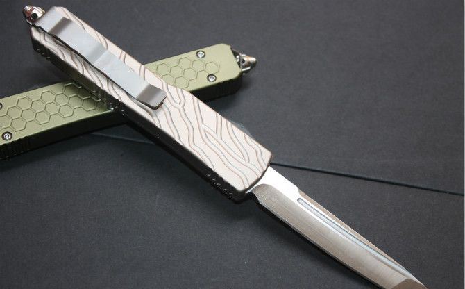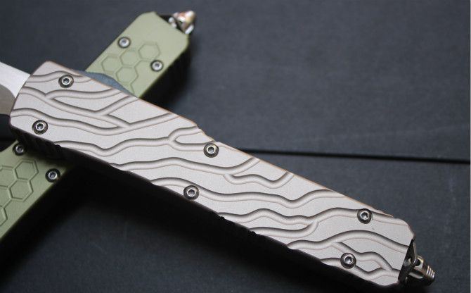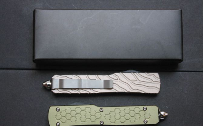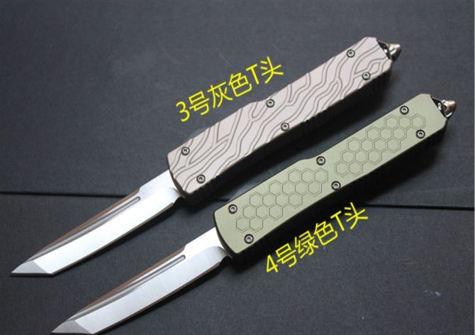 MICROTECH美国微技术跳刀暗夜勇士(3号灰色T头、4号绿色) 全长:21.4 CM 刃材:9cr18 刃长:8.5 CM 刃宽:1.5 CM 刃厚:0.33 CM 柄材:6061硬质铝合金 刀型:直跳 重量: 127g含包装
