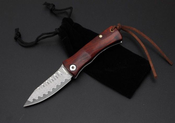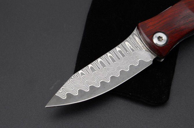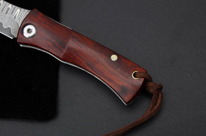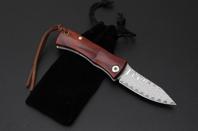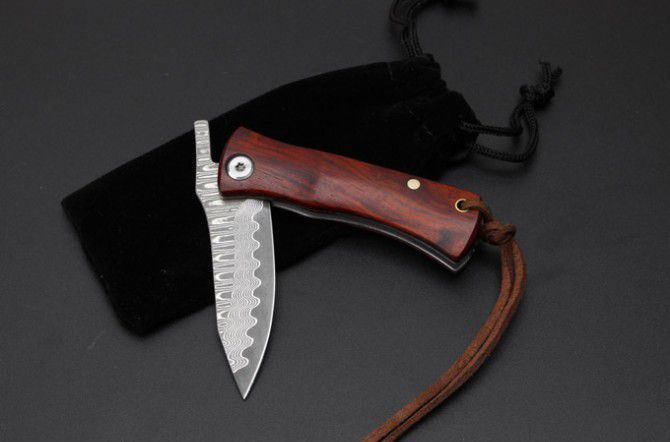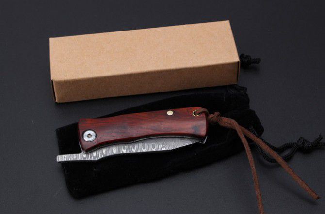 小狐仙大马士革折刀 全 长: 13cm 刃 长: 6cm 柄 长:7cm 硬 度: 59-60HRC 刃 厚: 0.2cm 重 量: 80克 表 面: 纯手工制造 柄 材: 微粒黄檀 刃 材:大马士革钢 刀刃纹路各异,以实物为准 其 他: 带布绒袋,刃口锋利 ,轻巧飘亮,送人最佳的选择