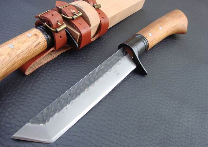 全长:30 刃长:16 刃厚:0.5 刃材: 喷砂锻钢 刀刃硬度: 59HRC 刀柄:原木 刀鞘:原木 +真皮+铜扣