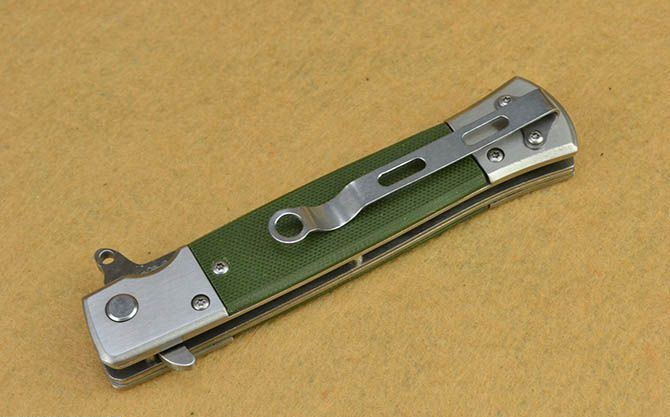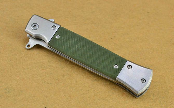 全 长:22cm 刃 长:9.5cm 柄 长:12cm 刃 宽:1.7cm 刃 厚:2.7mm 刃 材:440 重 量:169g(含包装) 硬 度:55HRC 表 面:砂光 柄 材:全钢外夹G10片 锁 型:线锁 其 他:带腰夹、配彩盒