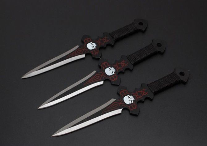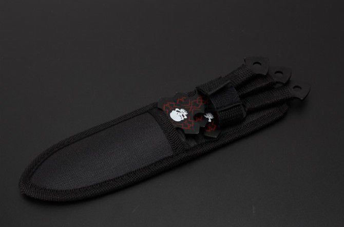 长度:18.8cm 最宽:2.1cm 刃厚:2.3mm 刀套:尼龙套包 总重:179g 表面:沙光 其它:3支装