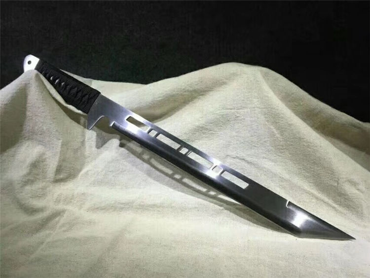 短刀 全长:46.5cm 刃长:30.0cm 柄长:13.0cm 厚度:0.28cm 重量:280克 长刀 全长:70.5cm 刃长:46.0cm 柄长:20.5cm 厚度:0.28cm 重量:380克 整套长:67CM 总重量:572克 刃 材:420 硬 度:56 表面处理砂光 配战术尼龙刀鞘
