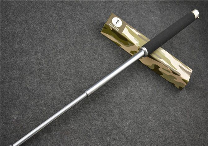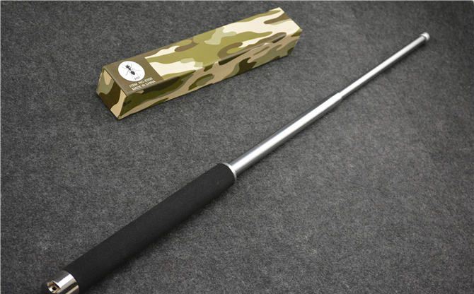 棍体材料:高强度合金钢, 硬度大概58HRC 棍把材料:黑色乙烯基合成(防滑材质,不会因流汗潮湿而滑手) 收缩长:23.8 CM (便携隐蔽) 甩出长:62.5 CM (常用长度) 毛重:634克(含包装) 表面:硬铬银色(永不掉色) 包装:纸盒+尼龙套 其他性能:钢卡式,专门在接口处精密处理,处理后甩出锁定牢靠, 收回时,朝地面垂直一磕就回去了。
