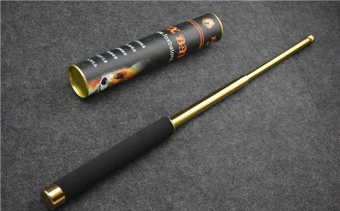 棍体材料:高强度钛合金钢, 硬度大概58HRC 棍把材料:黑色乙烯基合成(防滑材质,不会因流汗潮湿而滑手) 收缩长:20CM (便携隐蔽) 甩出长:52.5 CM (常用长度) 毛重:500克(含包装) 表面:钛金 包装:彩盒+尼龙套 其他性能:钢卡式,专门在接口处精密处理,处理后甩出锁定牢靠, 收回时,朝地面垂直一磕就回去了。