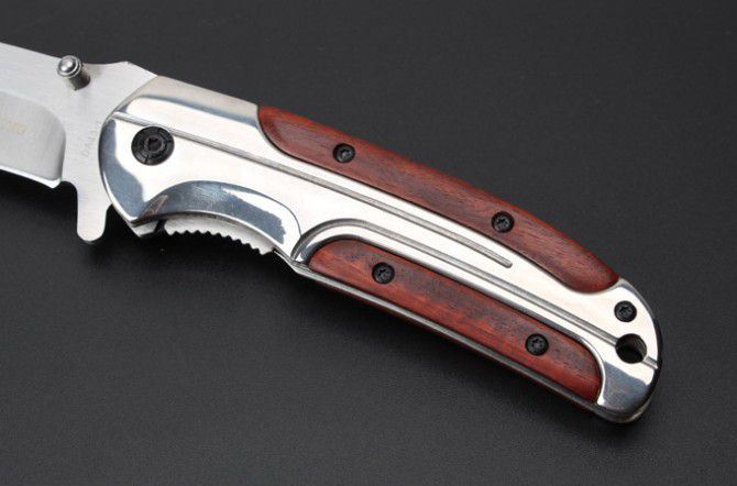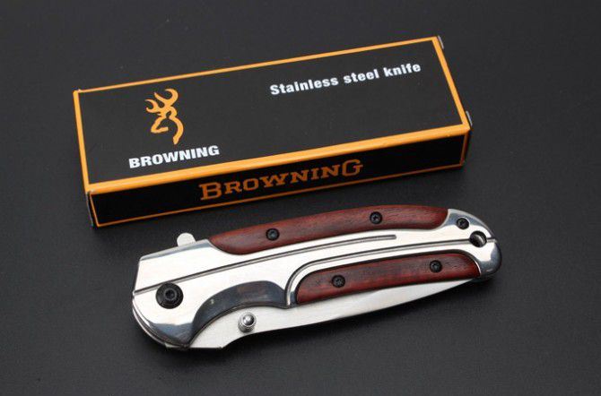 勃朗宁DA43-1快开折刀(镜面版) 全 长:20.8mm 刃 长:92mm 柄 长:115mm 刃 宽:27mm 刃 厚:2.8mm 刃 材:5Cr15Mov 重 量:177g(含包装) 硬 度:57HRC 表 面:沙光 柄 材:钢柄+红木 锁 型:快开 其 他:配彩盒