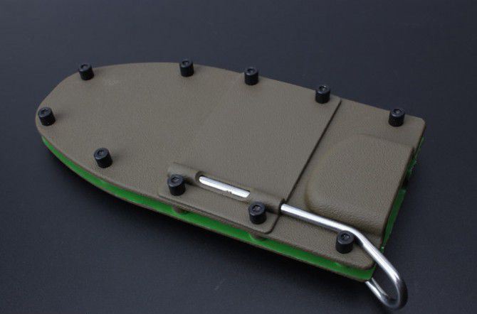 材质:440 全长:250cm 刃长:12.2cm 刃厚:0.65cm 刃宽: 4.3cm 刀重量: 633克(含包装) 表面:砂光拉丝 硬度:57HRC(真空热处理) 刀鞘:双色ABS