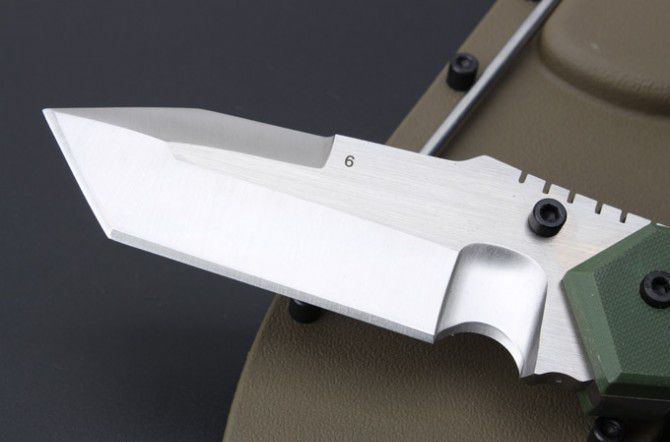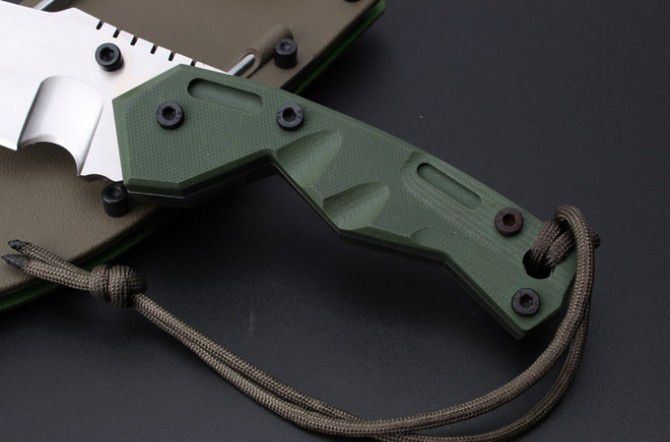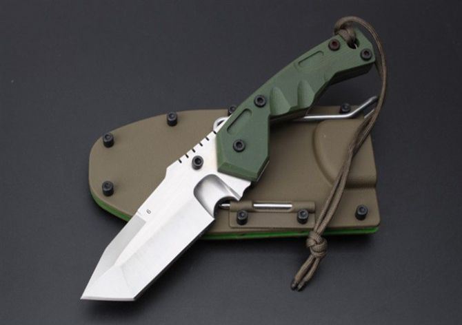 材质:440 全长:230cm 刃长:11.5cm 刃厚:0.65cm 刃宽: 4.1cm 刀重量: 656克(,含包装) 表面:砂光拉丝 硬度:57HRC(真空热处理) 刀鞘:双色ABS
