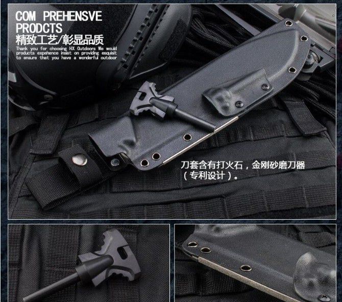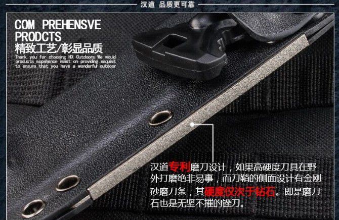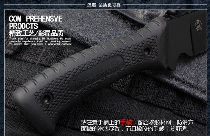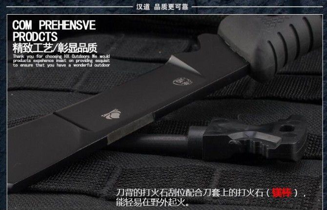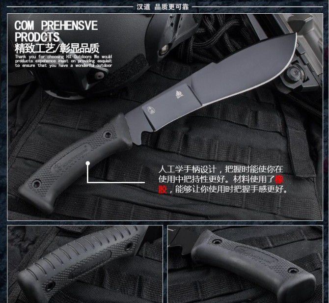 全 长:350mm 刃 长:225mm 刃 宽:51mm(最宽) 刃 厚:5.0mm 刃 材:7铬17钼钒钢 硬 度:60HRC{真空热处理) 表 面:黑 柄 材:橡胶手柄使用把握今感更好 刀 鞘:k鞘 净 重: 446g含包装