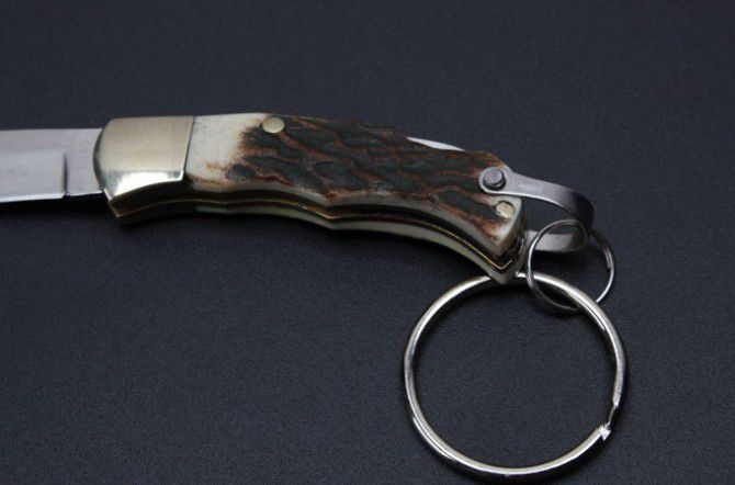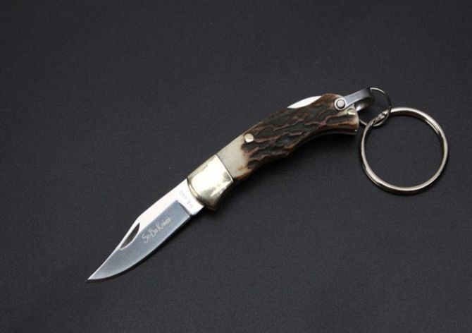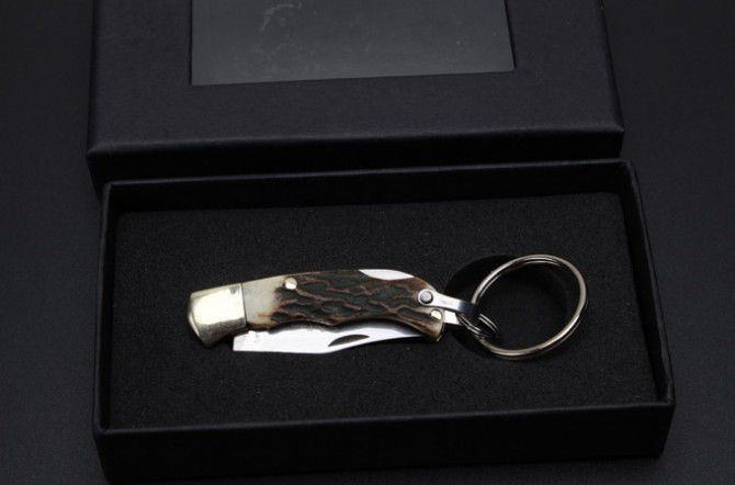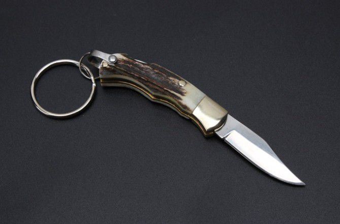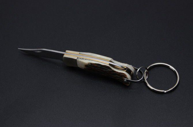纤纤鹿角柄迷你匙扣刀(小号) 全 长: 8.8cm 刃 长: 3.7cm 刃 宽: 1.0cm(最宽处) 闭 合: 5.0cm 硬 度: 59HRC 刃 厚: 0.21cm 重 量: 49克含包装 表 面: 纯手工制造 刃 材: 5Cr15Mov 柄 材: 铜头+鹿角 其 他: 刃口锋利 锁 型:制 尾