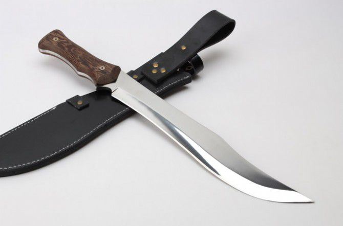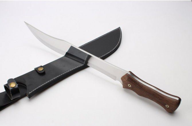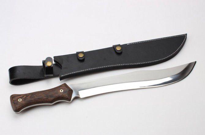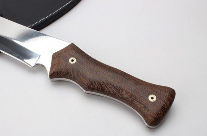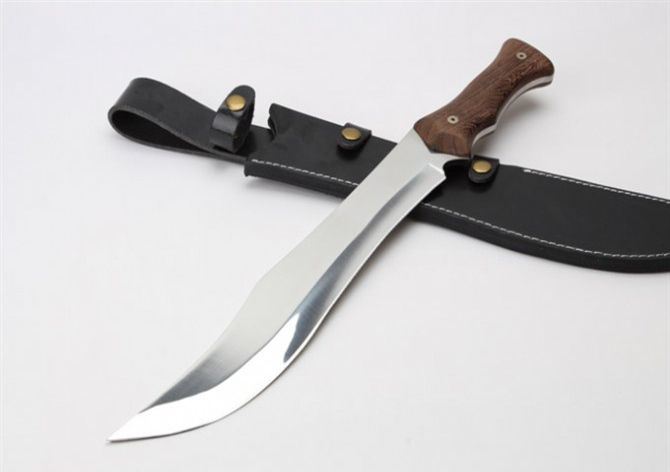 全 长:50.4mm 刃 长:350mm 柄 长:150mm 刃 宽:55mm 刃 厚:6.0mm 刃 材:7Cr13Mov 重 量:1231g(含包装) 硬 度:57HRC 表 面:超镜光 柄 材:黑檀木 锁 型:定锁 其 他:配皮套和硬纸盒