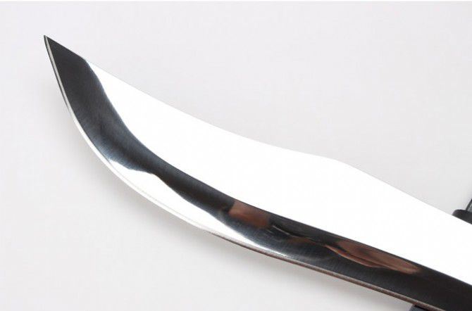 极限生存直刀(镜光版) 全 长:50.4mm 刃 长:350mm 柄 长:150mm 刃 宽:55mm 刃 厚:6.0mm 刃 材:7Cr13Mov 重 量:1231g(含包装) 硬 度:57HRC 表 面:超镜光 柄 材:黑檀木 锁 型:定锁 其 他:配皮套和硬纸盒
