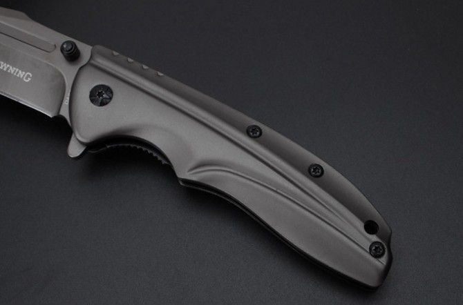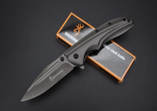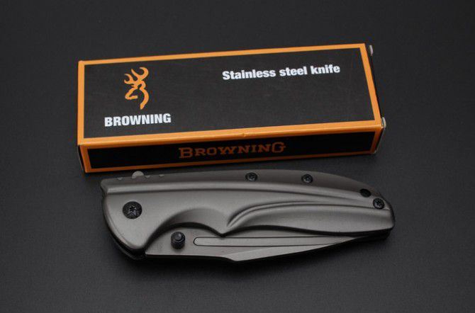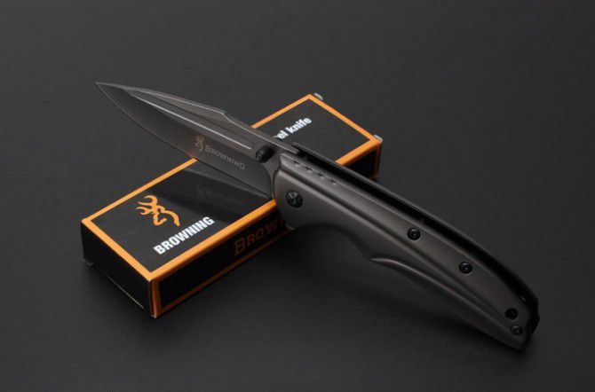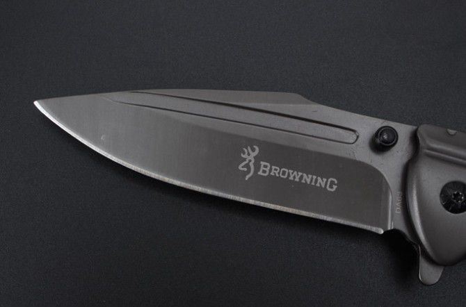 勃朗宁DA63折刀 全 长:225mm 刃 长:98mm 柄 长:125mm 刃 宽:31mm 刃 厚:3.3mm 刃 材:5Cr15Mov 重 量:254g(含包装) 硬 度:57HRC 表 面:镀钛 柄 材:钢柄 其 他:配彩盒