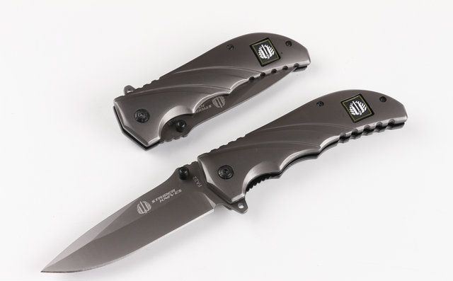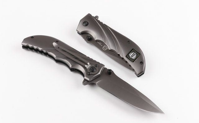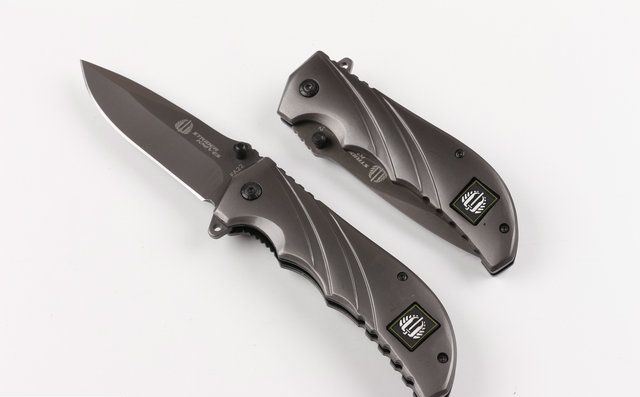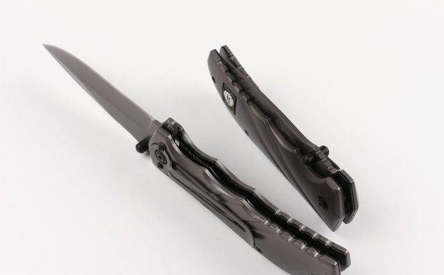全钛米克FA22快开折刀 刃材:440 硬度: 57HRC 全长:21.6CM 刃长:9.5CM 刃厚: 0.28CM 刃宽:2.8CM (最宽处) 柄长: 12.2CM 涂层:钛离子 柄材: 全钢 重量:250克 锁定: 线锁