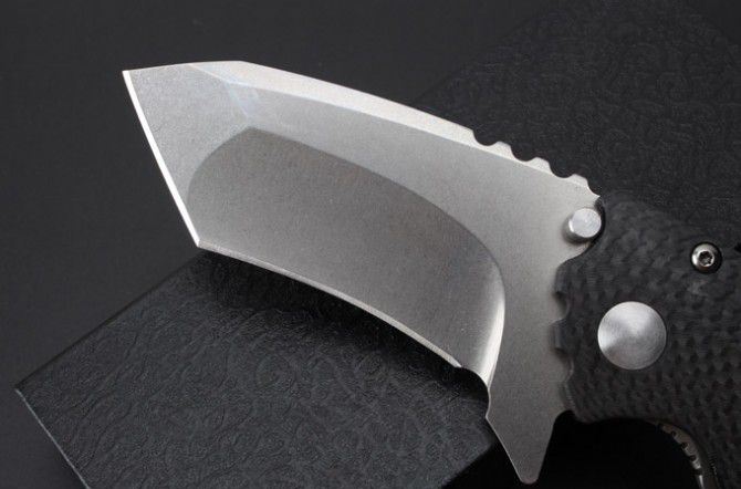 外星坦克钛合金折刀 (碳纤维+钛合金柄) 全长:215mm 刃长:82mm 柄长:130mm 刃宽:38mm 刃厚:4.9mm 刃材:D2 重量:220克 硬度:60HRC 表面:石洗 处理材料:碳纤+ TC4钛合金 包装:黑色盒子