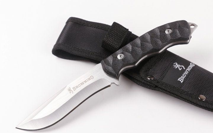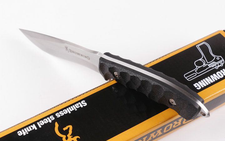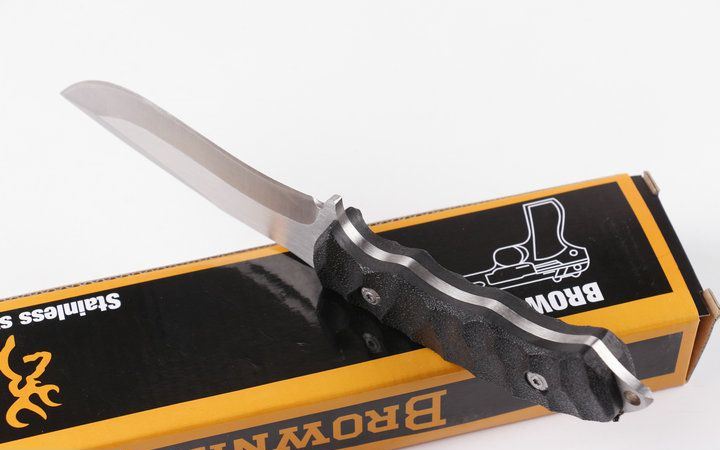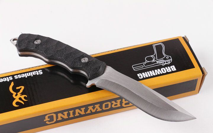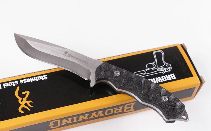 勃朗宁小精英直刀(D头) 全 长:22.8cm 刃 长:11.2cm 柄 长:11.6cm 刃 宽:2.8cm(最宽处) 刃 厚:3.6mm 刃 材:5crMov15 硬 度; 58HRC 刀 柄:ABS 表 面:沙光 结 构:一体龙骨,玻璃撞击器 重 量:250.0克 备 注:带尼龙套