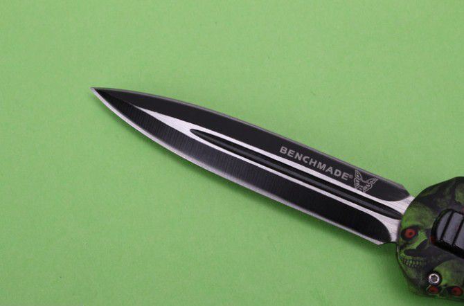 全 长: 22.9cm 刃 长: 9.6cm 刃 厚: 1.8mm 刃 材: 440 硬 度: 57HRC 刀 重: 200g 毛 重: 276g 表 面: 柄材 迷彩钢: 锌铝合金 刀 鞘: 尼龙 锁 闭:直出弹簧刀 注 意:购买的时候请注明是要什么颜色刀柄的。