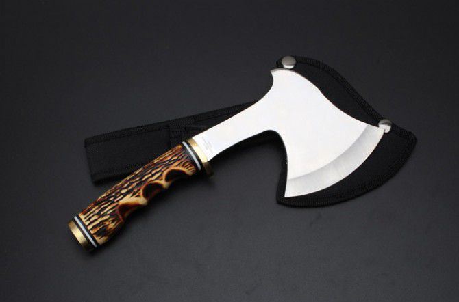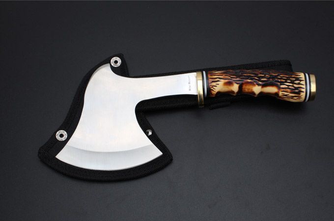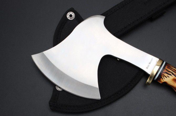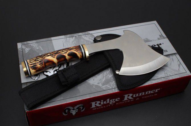 美国Ridge Runner山人狩猎斧(出口装) 全 长:240mm 刃 长:98mm 柄 长:110mm 刃 宽:100mm 刃 厚:35mm 刃 材:5Cr13Mov 硬 度:57HRC 表 面:砂光 柄 材:ABS 重 量:320g(含包装) 其 他:原厂彩盒+尼龙套