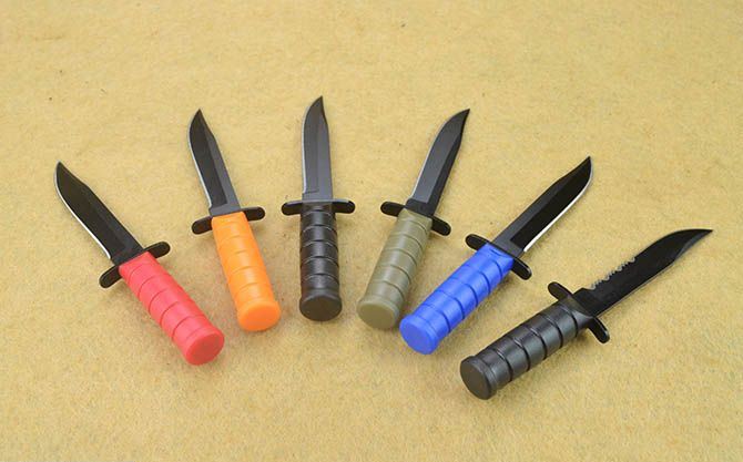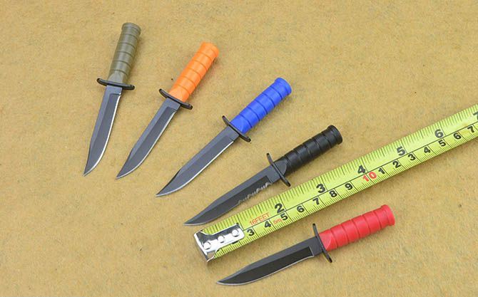 USMC超迷你小直刀(6款) 全 长:10cm 刃 长:5.5cm 刃 宽:1cm 刃 厚:2cm 刃 材:420 硬 度:52HRC 重 量:36g(含鞘) 表 面: 发黑 柄 长:4cm 柄 材:ABS(灰色/红色/橙色/蓝色/黑色全刃/黑色半齿 任选) 刀 鞘:带挂链K鞘