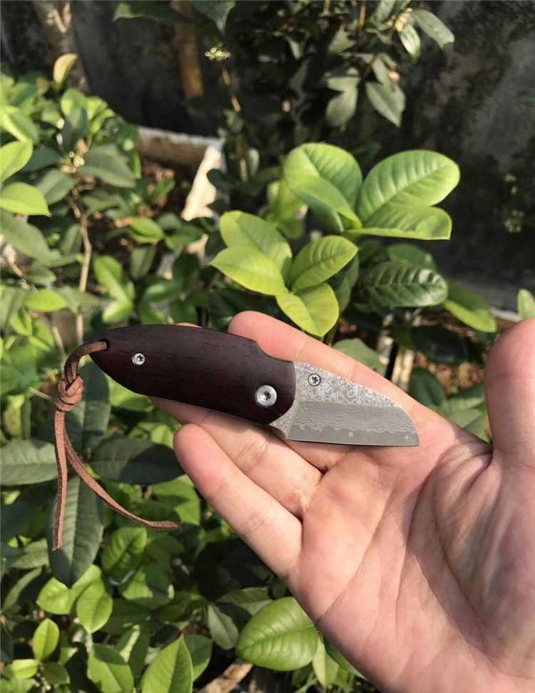 全 长: 11.5cm 刃 长: 4.5cm 柄 长:7cm 硬 度: 59-60HRC 刃 厚: 0.3cm 重 量: 80克 表 面: 纯手工制造 柄 材: 微粒黄檀 刃 材:大马士革钢 刀刃纹路各异,以实物为准