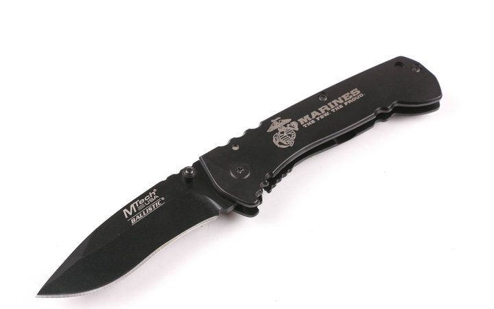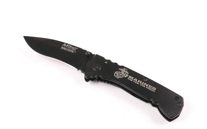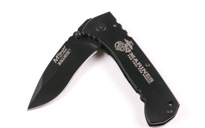 MT-A008折刀 全长:17.5cm 刃长:7cm 柄长:10cm 刃厚:0.3cm 刃宽: 2.2cm 刃材: 440 柄材: 铝片 硬度: 56HRC 净重:150克 锁定:线锁 表面处:镀钛 其他:原厂彩合