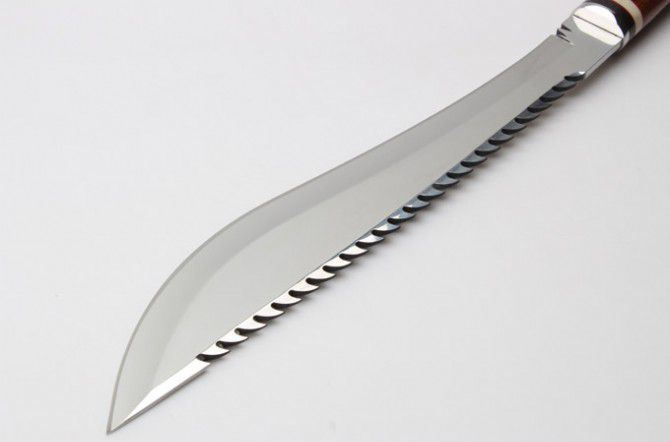 全 长: 58.6cm 刃 长: 39.5cm 柄 长: 19.1cm 刃 厚: 5.3mm 刃 宽: 6.3cm(最宽处) 刃 材: 420 硬 度: 57HRC 刀 重: 1346克(含包装) 表 面: 超镜光 柄 材: 钢+檀木 结 构: 一体龙骨 刀 鞘: 牛皮套 +纸盒
