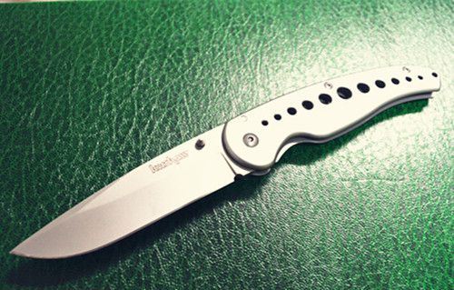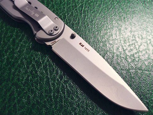 克肖1655征服者折刀 全 长: 21cm 刃 长: 9cm 刃 宽: 2.9cm 刃 厚: 3mm 刃 材: 440 硬 度: 58HRC 净 重: 138g 表 面: 灰钛 柄 材: 铝柄 锁 闭: 侧锁