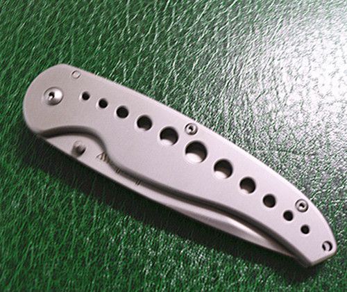 全 长: 21cm 刃 长: 9cm 刃 宽: 2.9cm 刃 厚: 3mm 刃 材: 440 硬 度: 58HRC 净 重: 138g 表 面: 灰钛 柄 材: 铝柄 锁 闭: 侧锁