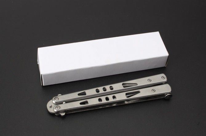 JL19蝴蝶甩刀(尖头、平头) 全 长:245mm 刃 长:98mm 柄 长:133mm 刃 宽:19mm 刃 厚:2.6mm 刃 材:3Cr13M 重 量:154g(含包装) 硬 度:55HRC 表 面:砂光 柄 材:钢柄 其 他:配彩盒