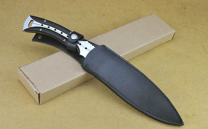 全 长:36cm 刃 长:20.8cm 刃 宽:4.3cm(最宽处) 刃 厚:5.7mm 柄 长:13cm 表 面:拉丝面 刃 材: 5Cr15 硬 度: 57HRC 柄 材: G10防滑柄片 结 构:龙骨一体贯穿整体 重 量:500克(含包装) 包 装:皮套+纸盒