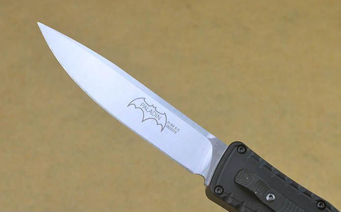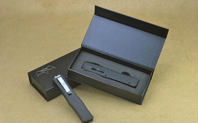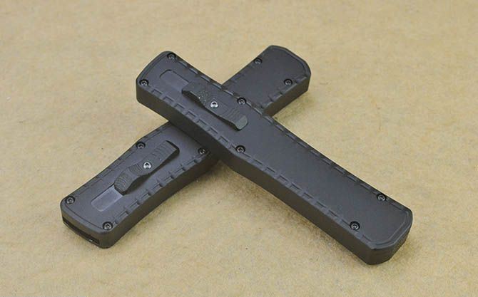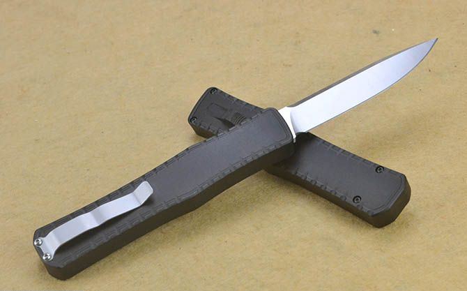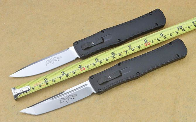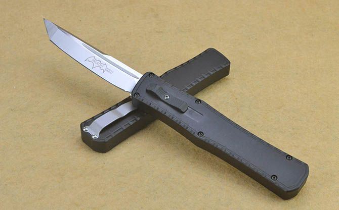 蝙蝠圣骑士P98经典黑柄直出弹簧刀(平头、尖头) 全 长: 24cm 刃 长: 9.8cm 刃 厚: 3.5mm 刃 宽: 2cm 柄 长: 14cm 刃 材: 440C 硬 度: 58-60HRC (超高硬度,非常锋利) 毛 重: 236g(含包装) 刃 面: 拉丝(平头、尖头) 柄 材: 航空铝 刀 套: 无 锁 闭: 直出弹簧刀 包 装: 高档硬纸盒 备 注: 带腰夹