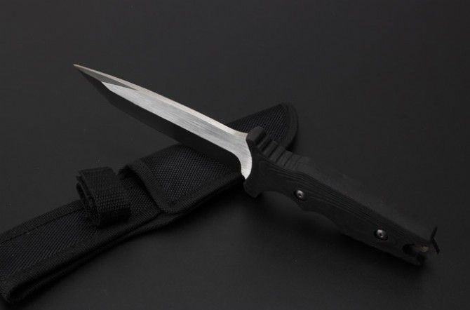 全 长:258mm 刃 长:132mm 柄 长:125mm 刃 宽:31mm 刃 厚:3.9mm 刃 材:5Cr13Mov 重 量:231g(含包装) 硬 度:56HRC 表 面:沙光 柄 材:橡塑 锁 型:定锁 其 他:配黑色牛津套