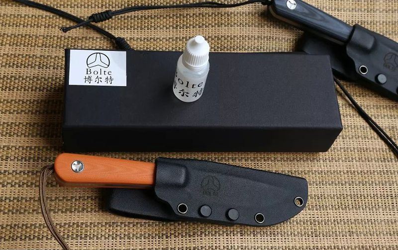 博尔特侦察员水果小直刀 全长:172mm 刃长:77mm 刃厚:4.4mm 刀最宽处:21mm 表面:刃面精美幼拉丝处理 类型:以锋利度、韧性保持度最出色,和独特的做工 开刃方式:二次开刃 刃材:D2 热处理方式:真空淬油深冷热处理 硬度:不低于60-61HRC 柄材:黑色、绿黑、灰黑、橙色G10加防滑处理 包装:精美黑纸盒+伞绳+护刀油 毛重:240克(含包装) 刀鞘:K鞘、K夹
