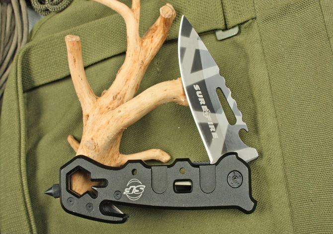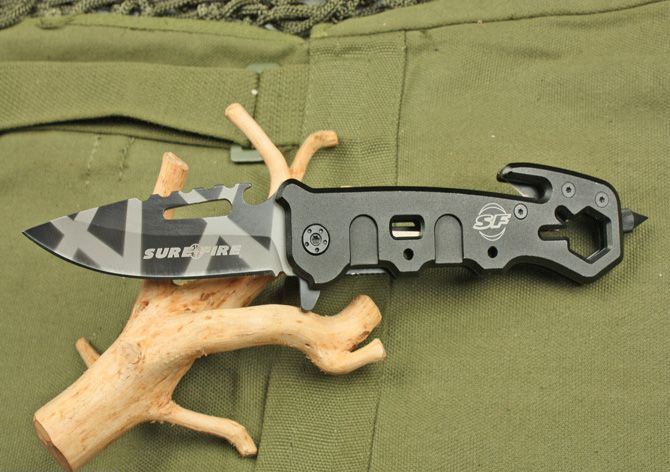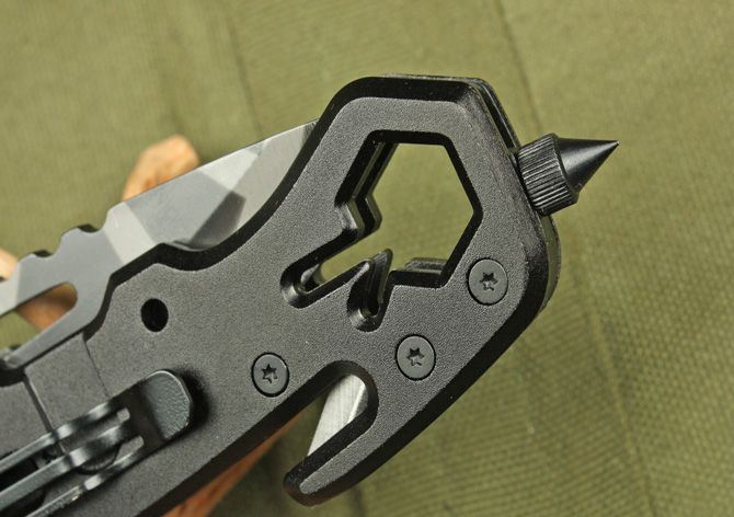 全长:22cm 刃长:9cm 柄长:13.5cm 刃厚:3mm 刃宽: 3cm 刃材: 3Cr13MoV 柄材: 铝 硬度: 55HRC 重量: 150克 表面处理: 氧化迷彩 锁型: 快开