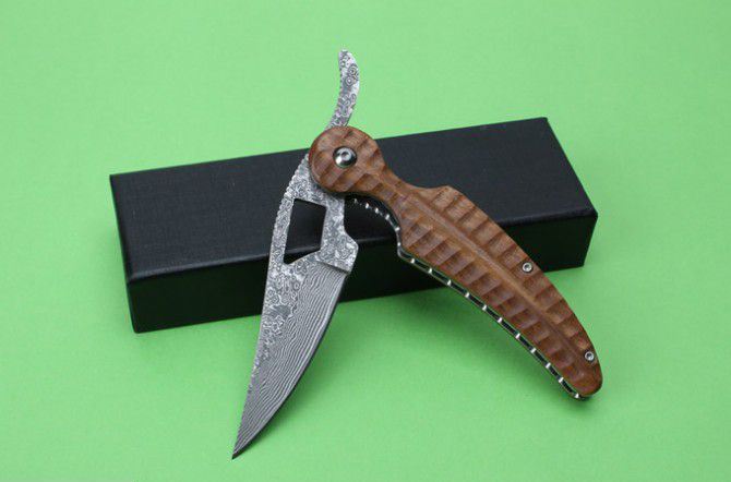 全 长:214mm 刃 长:93mm 柄 长:124mm 刃 宽:28mm 刃 厚:3mm 刃 材:大马士革 重 量:168g(含包装) 硬 度:58HRC 表 面:大马士革原纹 柄 材:绿檀木 锁 型:线锁 其 他:配皮套+礼品盒