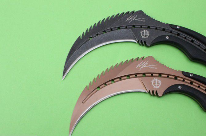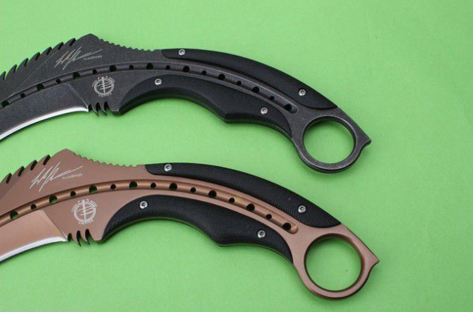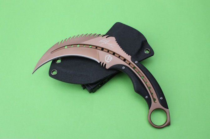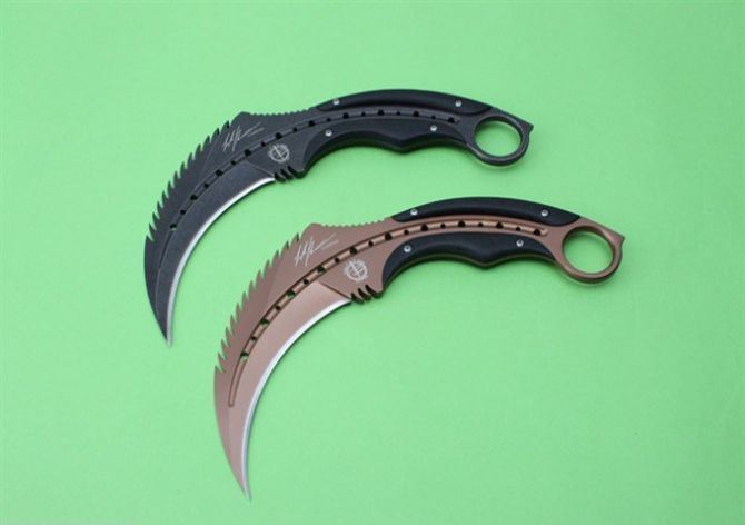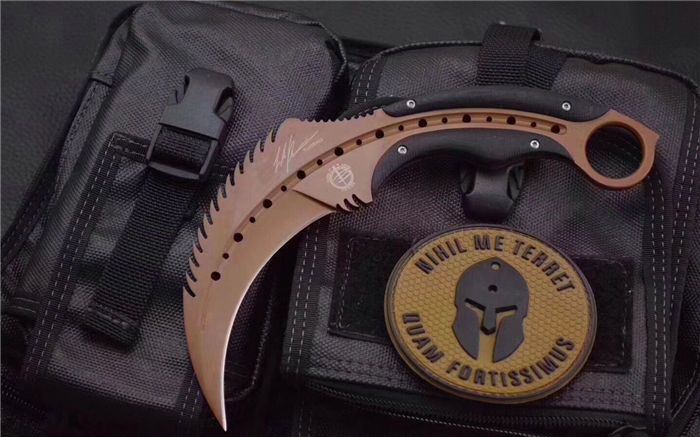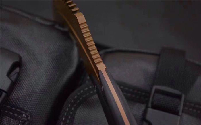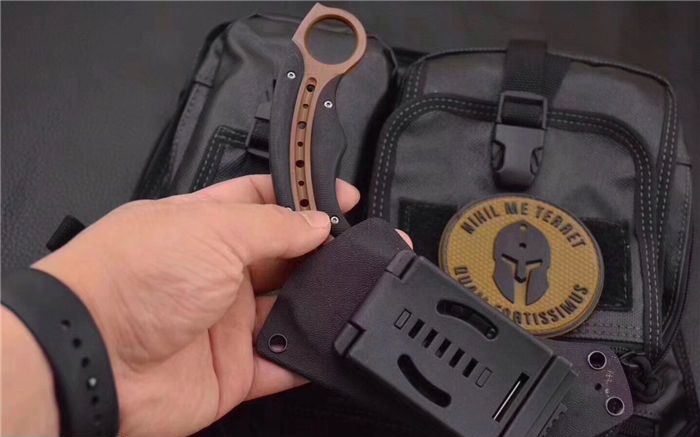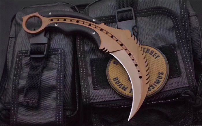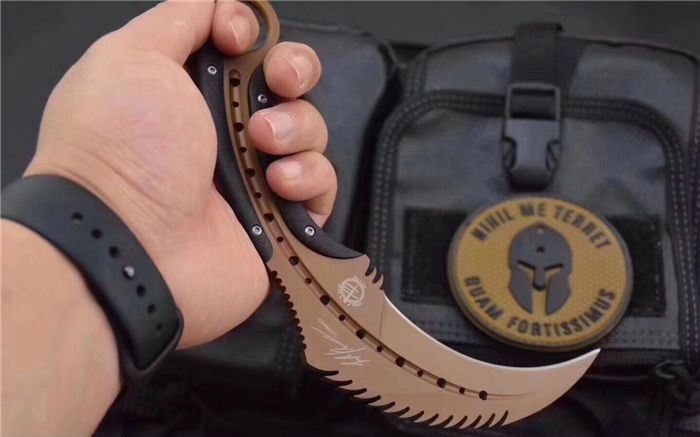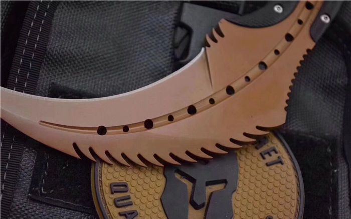 托德·贝格征服者爪刀(土豪金、石洗) 全 长:250mm 刃 长:100mm 柄 长:150mm 刃最宽:45mm 刃 厚:6mm 刃 材:8cr18mov 重 量:560g(含包装) 硬 度:59HRC 表 面:石洗 柄 材:钢一体柄+G10条 锁 型:定锁 其 他:配k鞘+牛皮纸盒子