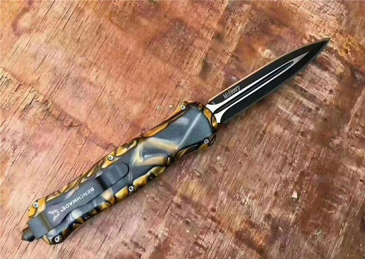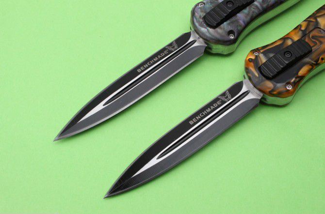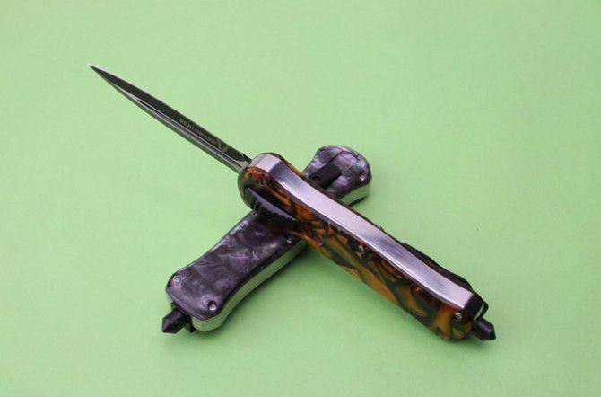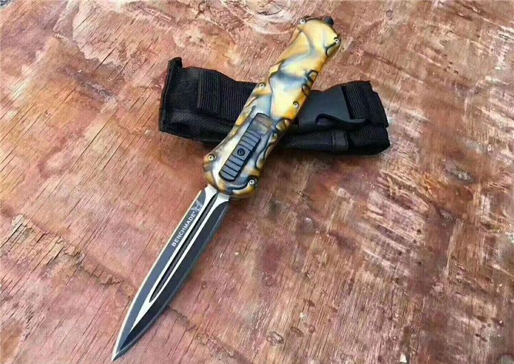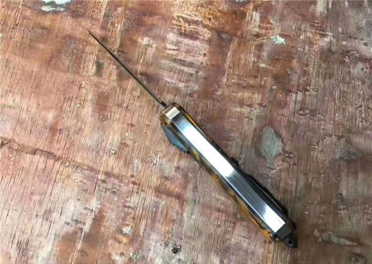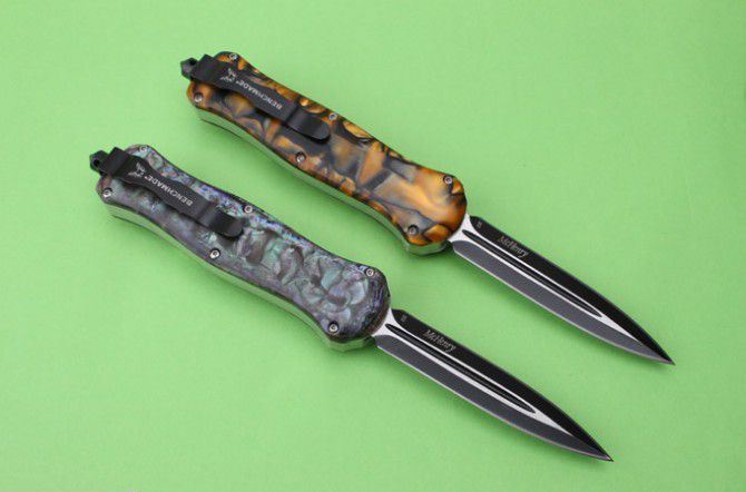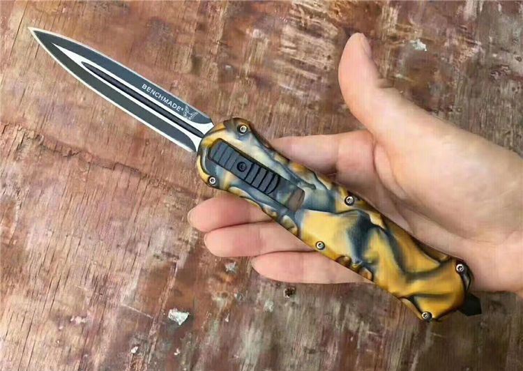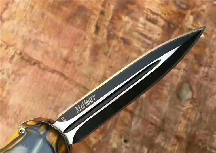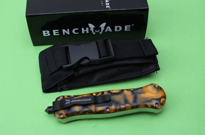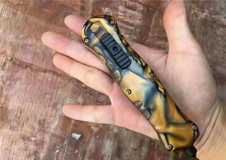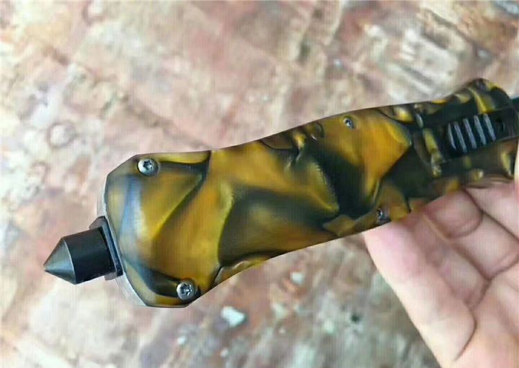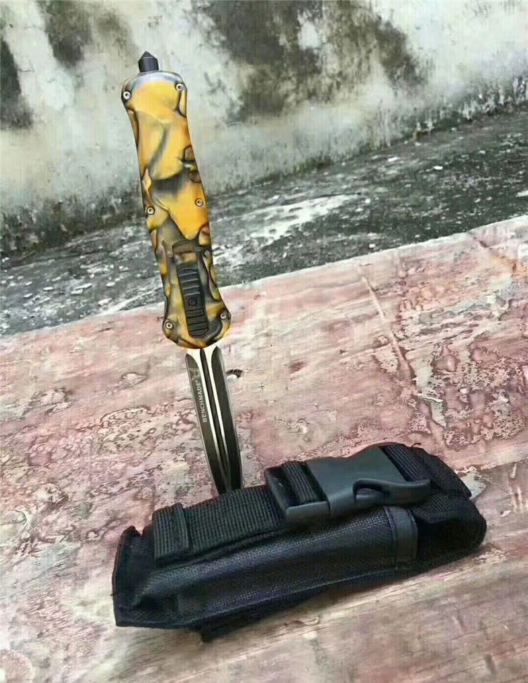 新版蝴蝶蜂王刺(黄柄、翡翠绿柄) 全 长: 23cm 刃 长: 9.6cm 刃 厚: 2.8mm 刃 材: 440 硬 度: 57HRC 刀 重: 201g 毛 重: 277g 表 面: 氧化黑 柄 材: 锌铝合金+树脂 刀 鞘: 尼龙 锁 闭: 直出弹簧刀