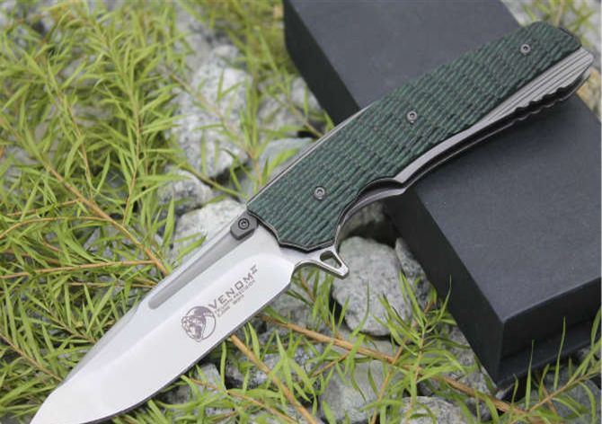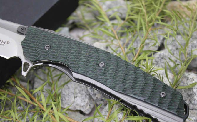 俄罗斯蟒蛇黑绿柄(石洗版) 全长:219mm 刃长:90mm 柄长:123mm 刀片材料:8Cr18MoV 叶片处理:本色石洗/发黑石洗 柄材:不锈钢(CNC加工完成)+G10黑绿色) 系统:采用平面轴承 硬度:58-60(真空热处理)