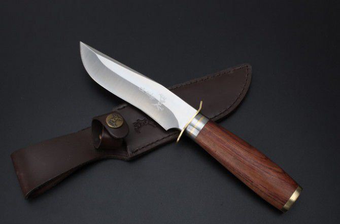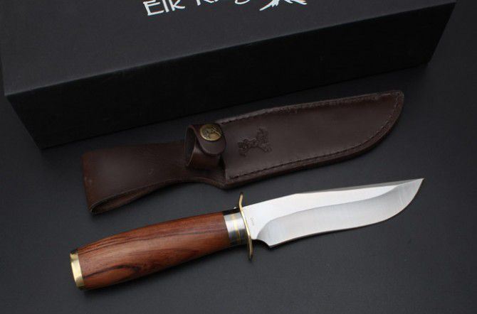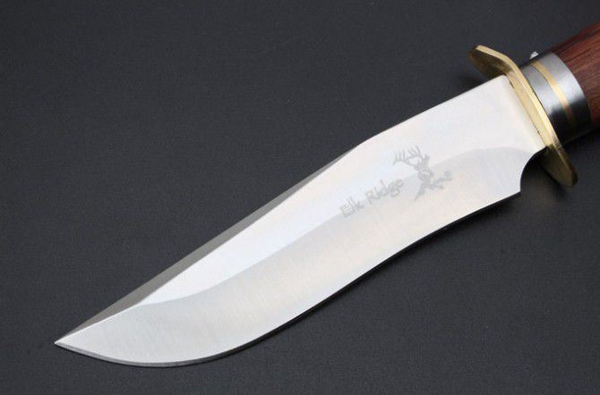 美国ELK Ridge鹿头牌丛林军直刀 全 长:24.3cm 刃 长:13.3cm 柄 长:11cm 刃 宽:3cm 刃 厚:4.8mm 刃 材:440C 重 量:559g(含包装) 硬 度:57-58HRC(超锋利) 表 面:精幼砂光 柄 材:红斑木+精铸纯铜 其 他:高档纸盒和皮套