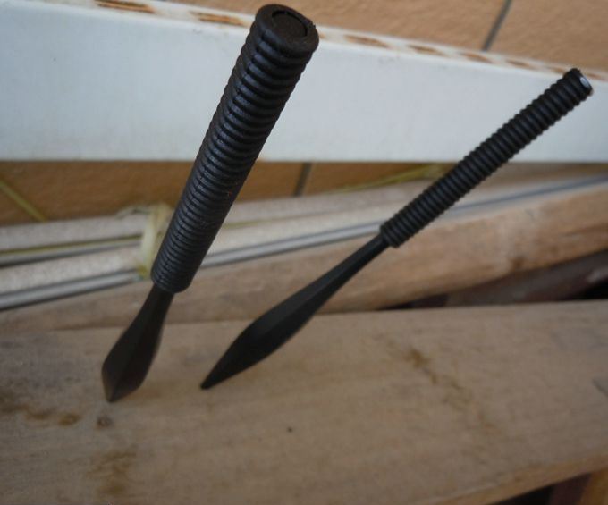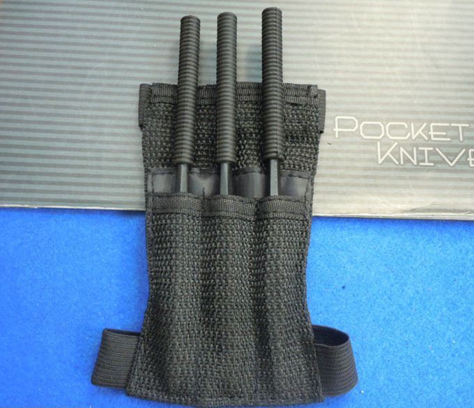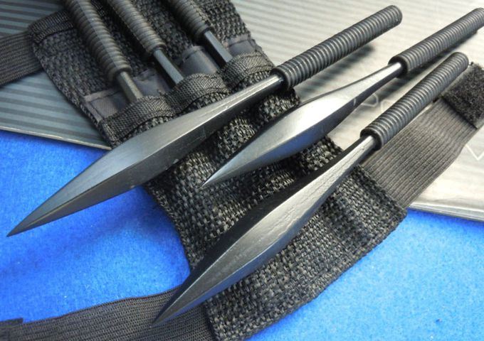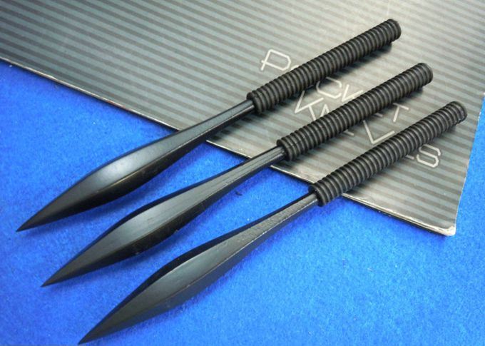 忍者手裹飞镖 全长:15.5cm 刃厚:1.3cm 刃宽:1.5cm(最宽) 刃长:9cm 表面:发黑 材料:440 柄长:6.5cm 柄材:一体式 毛重:165g(含包装) 包装:尼龙套